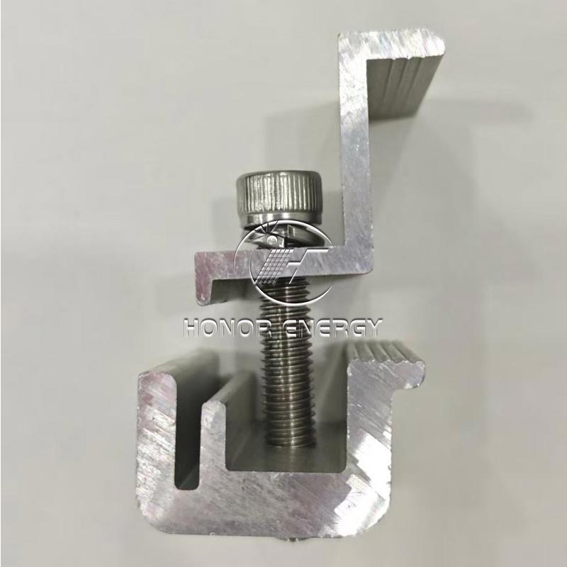 Honor Energy is a manufacturer specializing in no drill solar end clamp,which is a key hardware accessory used in solar photovoltaic systems to fix the edges of modules. This end clamp design is innovative because it requires no drilling at all, keeping the structure completely hole-free and at full strength. It also makes installation simpler by not needing extra parts like flat washers.