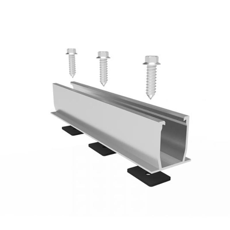 Solar mini rail made of 6005-T5 high-strength aluminum alloy (anodized for anti-corrosion) with SUS304 stainless steel connectors, it works with color steel tiles/galvanized sheets to resist rust and outdoor damage. Weighing only 1kg per meter, it uses "peak point fixing" to spread loads evenly, avoiding extra pressure on metal roofs.