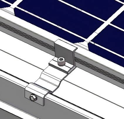 Solar waterproof clamp on rails’ installation process is extremely straightforward, and its design is equally simple. During installation, simply place it onto the gutter, secure it on both sides, then use self-tapping screws to drill holes and lock it in place. However, note that two self-tapping screws must be installed on each side, and they must be aligned to ensure even force distribution across the photovoltaic panel.